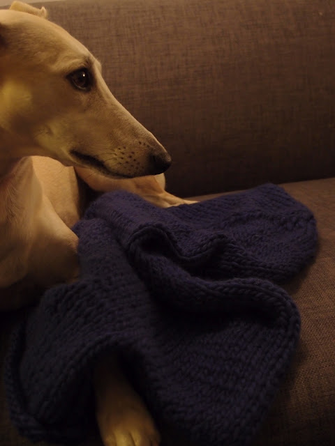 Vi har ryddet i klesskapet, jepp, det fikk jeg delt det også :) Sommerklærne er borte og tjukkelæstan er framme. Det dukket også opp litt vinterklær til de firbente, blandt annet to hjemmestrikkede dekken. Det ene skulle jeg egentlig gi vekk, men så hadde vi plutselig en hund til før jeg kom så langt. Jeg laget oppskrifta selv etter prøveogfeilemetoden, defor er det ett fint og ett litt mindre fint dekken. Men hvem bryr seg om det når hundene er så søte :)